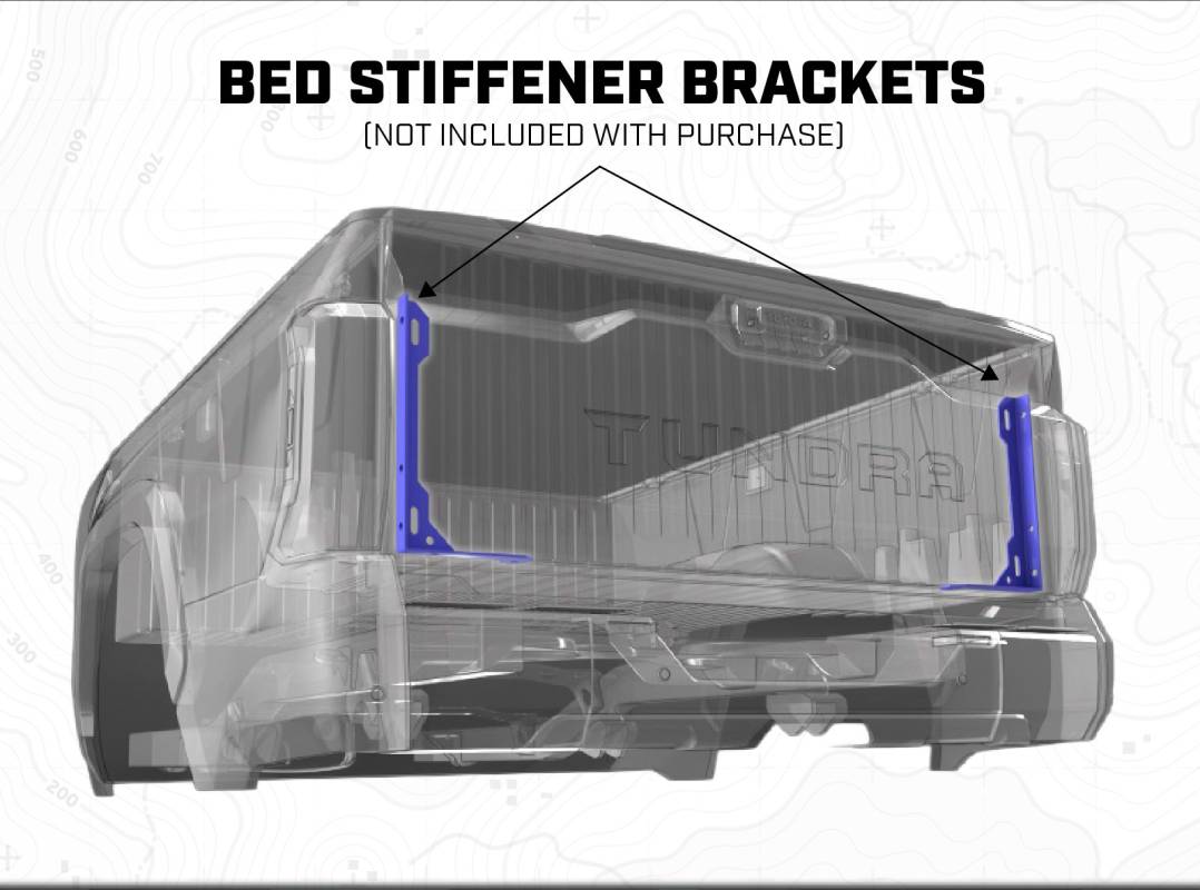 - FITMENT NOTE: The 2022+ Toyota Tundra requires Bed Stiffeners/J-Braces to be installed with all bed rail mounted accessories, like RSi tops. Failure to install these may affect the structural integrity of the bed walls. This may not only damage your truck bed, but may also lead to the SmartCap rear flange welding failures and other critical damage. We do not offer bed stiffeners, but an internet search will show multiple options.